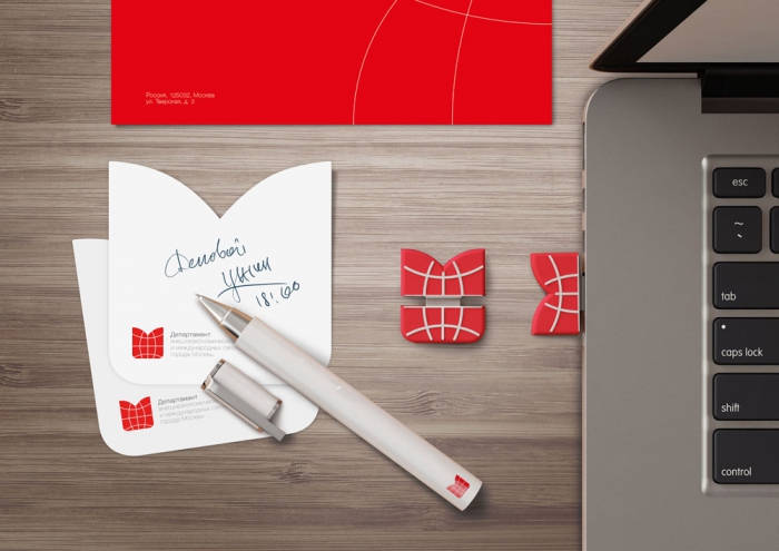 Простой и строгий фирменный стиль одновременно транслирует гибкость, открытость отношений и готовность Департамента к активному сотрудничеству. Дополнительно с новым образом Департамента была разработана серия бизнес-сувениров.