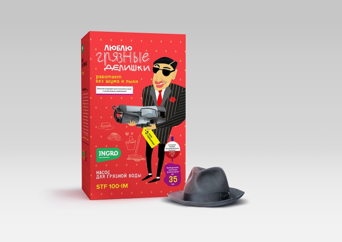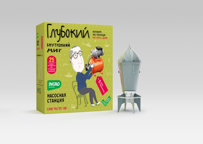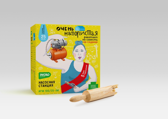Агентство :OTVETDESIGN разработало нестандартный и забавный дизайн упаковки для вывода на рынок недорогой отечественной марки бытовых насосов INGRO. Креаторы создали целую серию запоминающихся персонажей, к которым просто невозможно остаться равнодушным.