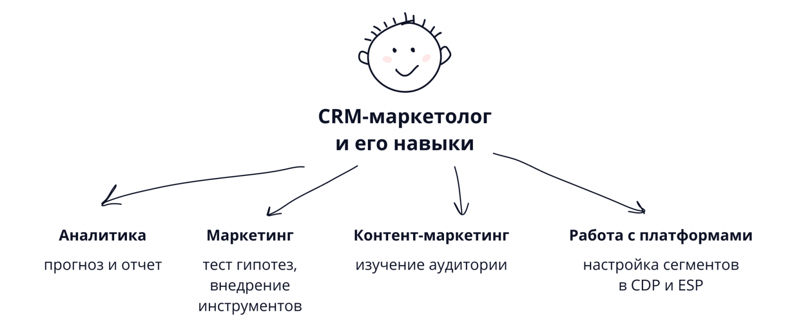 Ценятся на рынке и CRM-маркетологи из специализированных агентств. У них есть мультиэкспертиза, то есть представление о том, как CRM-маркетинг работает в разных сферах рынка: от ритейла до чёрной металлургии.