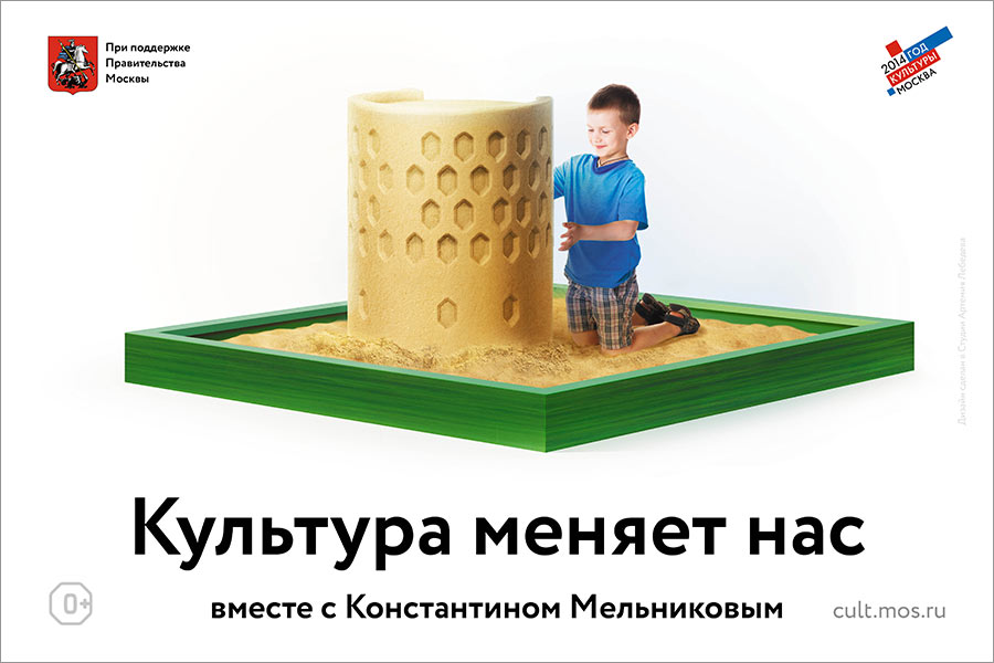 Новое прочтение получили такие шедевры, как «Композиция» Мондриана, «Виолончель и шахматная доска» Гриса, «Супрематическая композиция» Малевича, «Мыслитель» Родена, «Дискобол» Мирона, дом Мельникова в Кривоарбатском переулке. Слоган кампании - «Культура меняет нас».