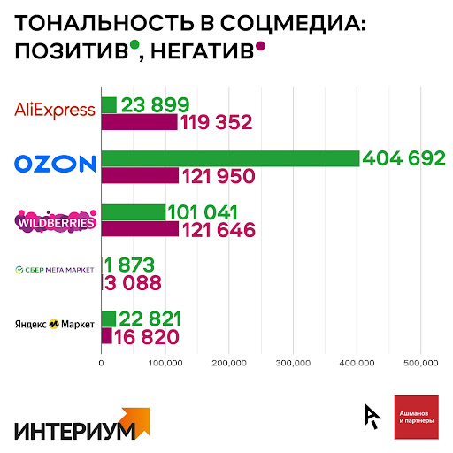 По данным аналитиков «Ашманов и партнёры» и «Интериума», большинство пользователей выражают негатив в отношении сроков, времени доставки товаров, удобстве использования десктопных и мобильных версий маркетплейсов. Важный аспект для пользователей ― оперативность площадок при работе со спорными ситуациями ― возврат товара, расчёт скидки, случаи мошенничества и др. Данная работа происходит как на самих площадках, так и в соцсетях.