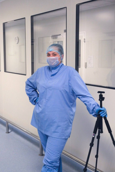 Но главное, что нам нужно было учитывать при работе — съемки в стерильных зонах. На предприятии клиента следят за постоянным поддержанием чистоты и стерильности. Кроме особых правил съемок, включающих ношение спецодежды, в наши задачи входила постоянная дезинфекция съемочной техники и оборудования. Всего мы отсняли 5 чистых линий на производстве, и для съемок каждой из них нам нужно было проходить всю процедуру заново.