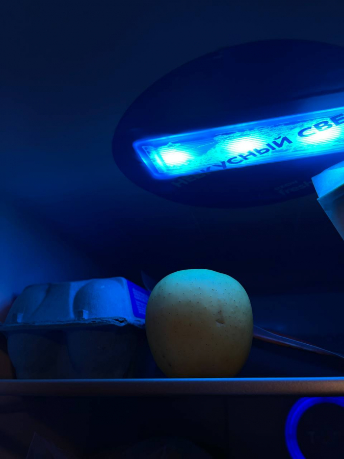 Команда Ozon fresh, вооружившись научными данными и проведя собственные эксперименты, нашла тот самый оттенок синего. Кроме того, были изучены формы и размеры ламп в разных моделях холодильников и сделаны соответствующие тесты.