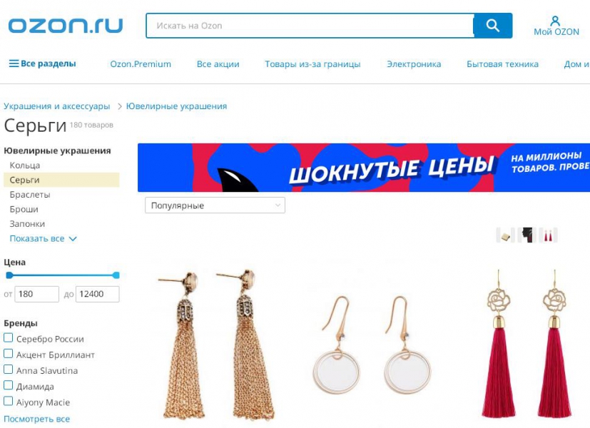 Онлайн-ритейлер Ozon запустил продажу ювелирных изделий в Москве и Московской области, а в ближайшее время начнёт продажи ещё в нескольких регионах страны. На сайте представлены бренды «Инталия», «Карат», «Акцент бриллиант», «Серебро России» и другие, сообщает «Коммерсант» со ссылкой на пресс-службу компании.