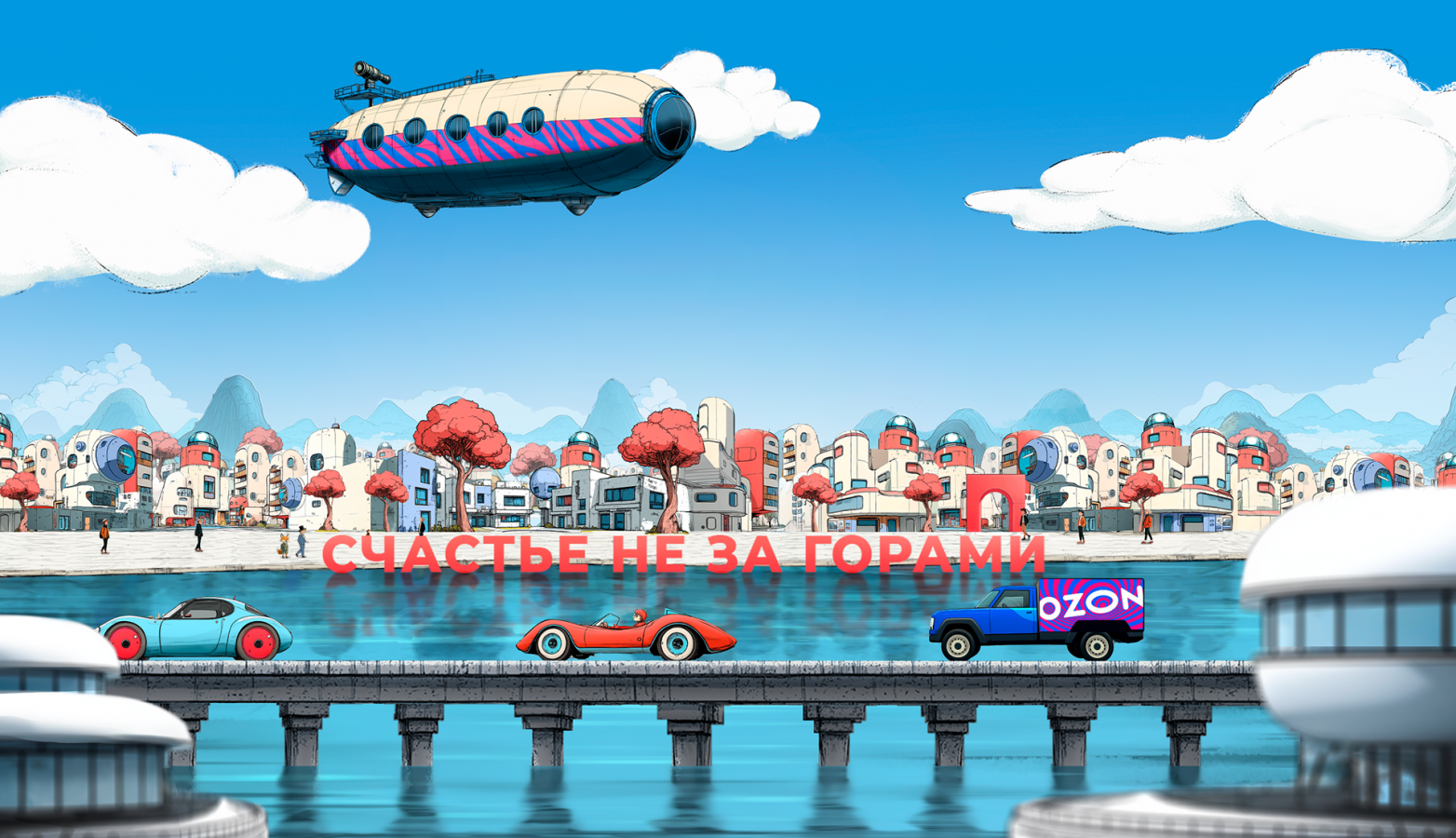 После запуска сериала заходишь в обычный пункт выдачи Ozon — и он кажется декорацией. Как будто ты туда уже «входил» раньше, только в раскадровке. Вроде ты живешь в реальности, но ощущение, что все чуть-чуть рисованное, остается. Мы не ставили перед собой задачу создать параллельную реальность — итогом работы стал визуально выразительный и концептуально цельный мир, отражающий ценности и возможности экосистемы Ozon. А еще у нас осталось знание множества странных фактов: где в Перми памятник с ушами, как выглядит типовая крыша в Иваново, и сколько вариаций может быть у одного и того же типа рюкзака на иллюстрации.