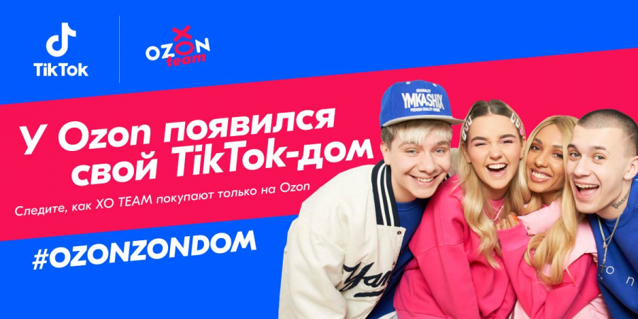 Ozon в честь своего дня рождения завел свой TikTok-дом — целый месяц маркетплейс будет интегрирован в TikTok-хаус XO Team, рассказали Sostav в компании. В рамках партнерства участники XO Team будут обустраивать жилье и покупать товары и услуги через приложение Ozon, снимая видео для платформы.