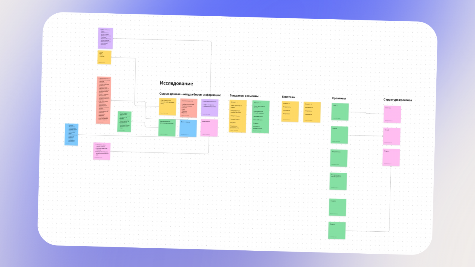 Работу мы начали с первичного тестирования по нашему фреймворку, даже если реклама запускалась и до старта работ. За счёт этого мы формируем собственные гипотезы, часто отличные от изначальных вариантов клиента.