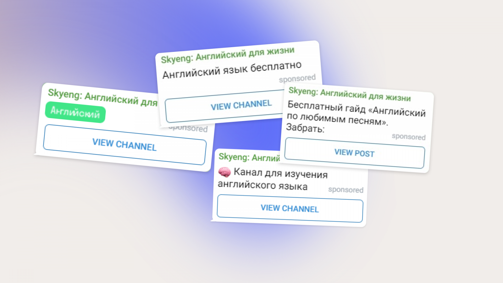 Помимо работы во «Вконтакте», мы взяли курс на рекламу в Telegram. Наша задача — привлекать пользователей в канал Skyeng, которые в дальнейшем попадают в контентные воронки и догреваются до продаж. Стартовая точка — подписчик по 2 евро.