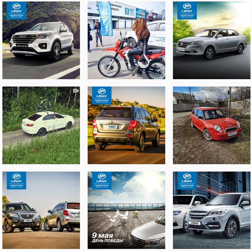 Особо креативного мы ничего не нашли — большая часть контента, очевидно, пришла из центрального офиса, а для российского рынка ничего не производят. Мы решили бросить бессмысленные поиски и пошли на официальные акаунты в Instagram: Chery, Lifan и Geely.
