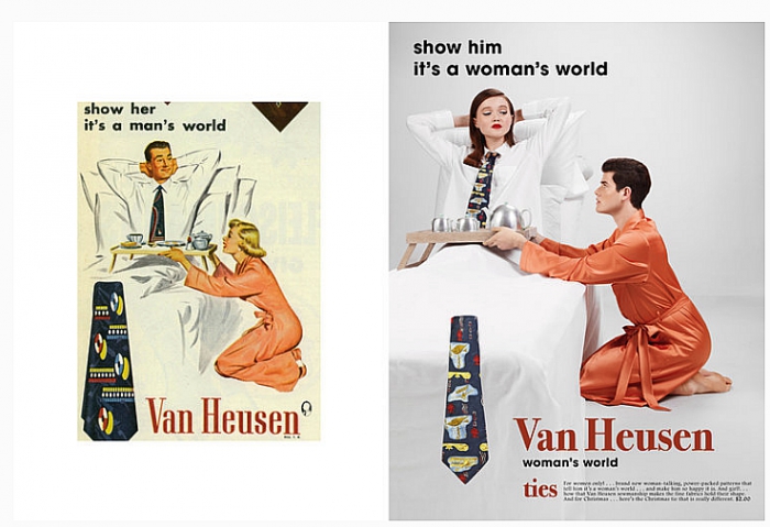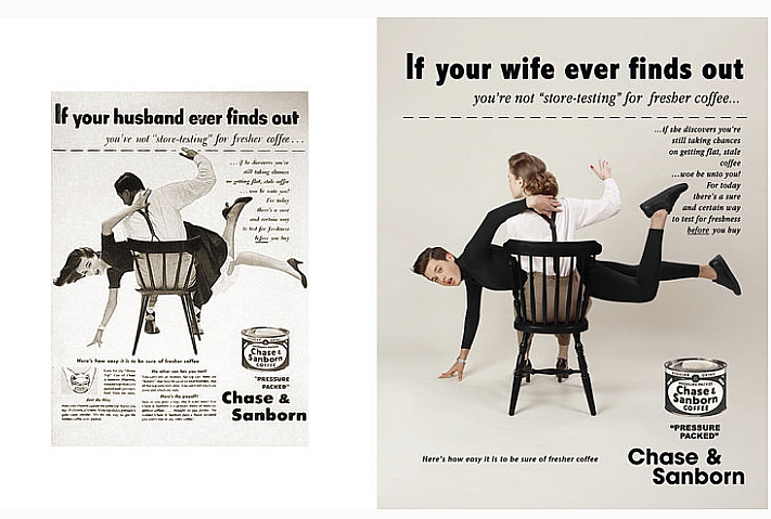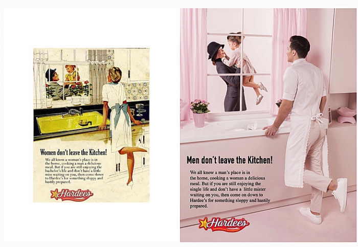 Ливанский художник Эли Резкалла (Eli Rezkallah) поменял местами женщин и мужчин на американских рекламных плакатах 1940-60х годов. Тем самым он переосмыслил их концепцию и высмеял сексизм.