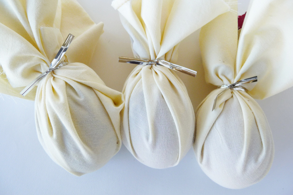 Казалось бы, как связаны старые галстуки с креативным оформлением пасхальных яиц? Существует оформление, которое подойдет желающим избавиться от ненужных аксессуаров и фанатам «турецких огурцов». Можно поместить яйцо внутрь галстука, сверху замотать светлой тканью и сварить в обычной воде с добавлением 60 мл уксуса. Экспериментатор будет вознагражден узором, который с галстука переместится на яйцо.