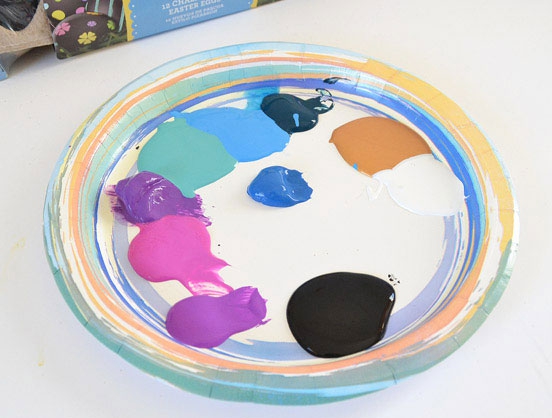 Еще один способ креативно оформить яйца - покрасить несколько штук и использовать разбитую скорлупу для украшения других, приклеив кусочки мозаикой.