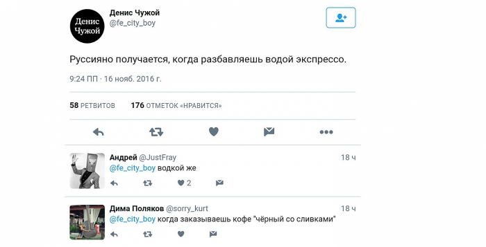 Новость облетела издания и социальные медиа. Фантазия пользователей не знала границ: репрессо, москалино, капуттино, ватте, депрессо и ещё с десяток вариантов.