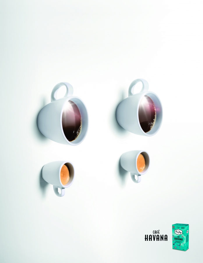 Реклама связывает кофе с такими туристическими символами, как статуя Свободы, Триумфальная арка, винтажные автомобили Кубы, архитектура Барселоны. Макеты разработаны для линейки, включающей Café Havana, Café Barcelona, Café Parisien, Café Sydney.