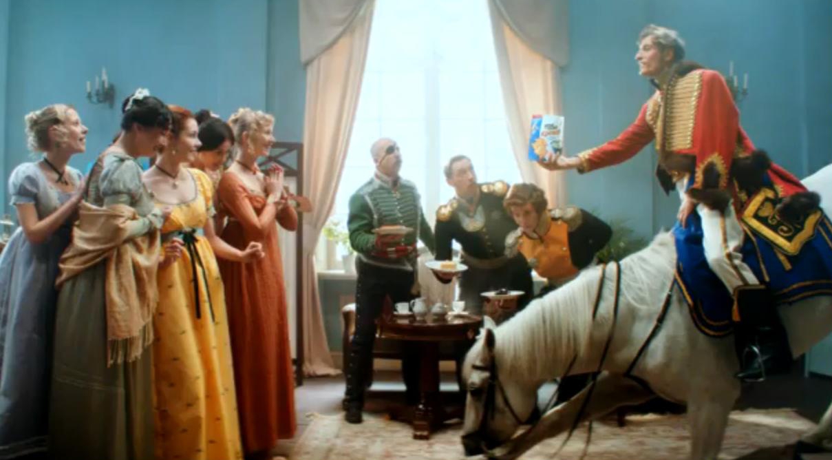 Компания Frito Lay (PepsiCo) и агентство BBDO Moscow продолжают сравнивать популярного шоумена Павла Волю со знаковыми для российской истории персонажами в рекламе бренда снэков ХрусTeam. После Александра Невского, Михаила Кутузова и Ивана Грозного телеведущий примерил образ поэта и героя войны 1812 года Дениса Давыдова.