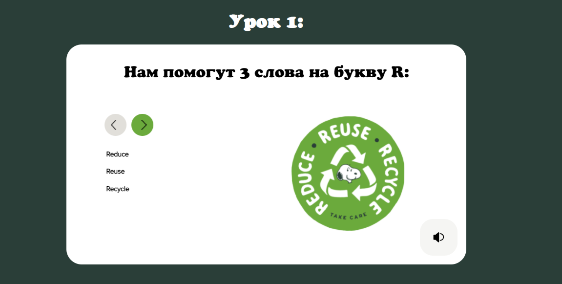 Проект позволяет доступным для детей языком рассказать о простых правилах экологичного образа жизни и превратить занятия в увлекательную игру благодаря нашим дизайнерам и персонажу Снупи из комиксов Peanuts. Мы надеемся, что наш курс поможет родителям заинтересовать детей новой важной темой, знания в которой, точно пригодятся им в будущем.