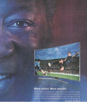 Речь идет о рекламе телевизоров Samsung, которая появилась на страницах газеты The New York Times в октябре прошлого года. Несмотря на то, что в рекламе не упоминалось имя Пеле, в ней использовался образ человека, очень похожего на легендарного футболиста.