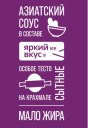 Отдельное внимание уделили характеристикам дамплингов — для них отвели зону в верхней правой части упаковки. Геометрия в типографике, плашки и иконки также отсылают к азиатскому стилю и рифмуются с простыми геометрическими формами в иллюстрации.