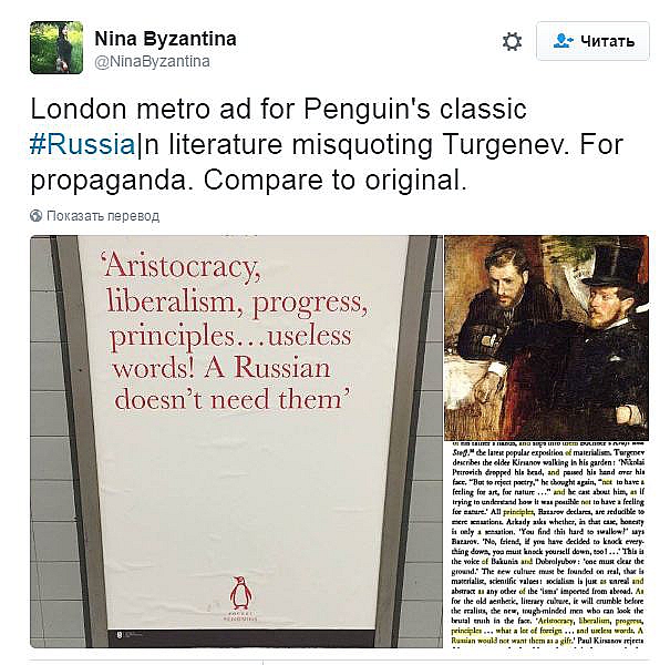 История с рекламой Penguin Books набирает обороты. Пользователи потребовали убрать «антирусские плакаты» и принести официальные извинения — соответствующую петицию на Change.org подписало 1975 человек. Как заявляет автор петиции, «издательский дом полагается на дешевую пропаганду, основанную на межнациональной розни». Компании должно быть стыдно за такие «грязные трюки», говорится в обращении.