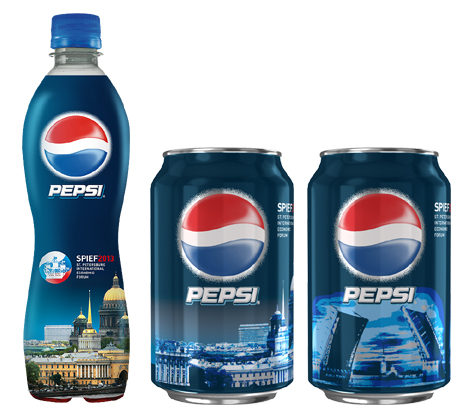 PepsiCo уже не первый год сотрудничает с Петербургским экономическим форумом, и в ознаменование четвертого по счету фестиваля, на который компания предоставляет продукты и напитки для всех мероприятий, на прилавках магазинов Санкт-Петербурга и Ленинградской области появилась лимитированная серия банок и бутылок Pepsi, посвященная этому событию.