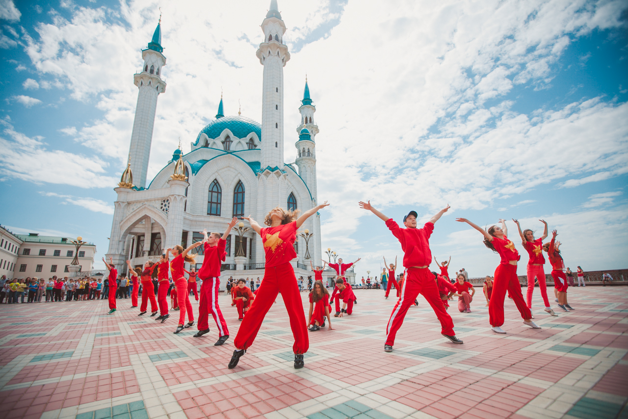 В акции «Любимый. Сердце города» приняли участие около пятисот человек – волонтеры ВУЗов Казани и танцевальные коллективы. Все они выстроились в виде сердца и по команде ведущего открывали и закрывали красные зонты, повторяя биение сердца. Затем все участники отпустили в небо над мечетью Кул Шариф полторы тысячи шаров, на которых каждый написал свои заветные желания.