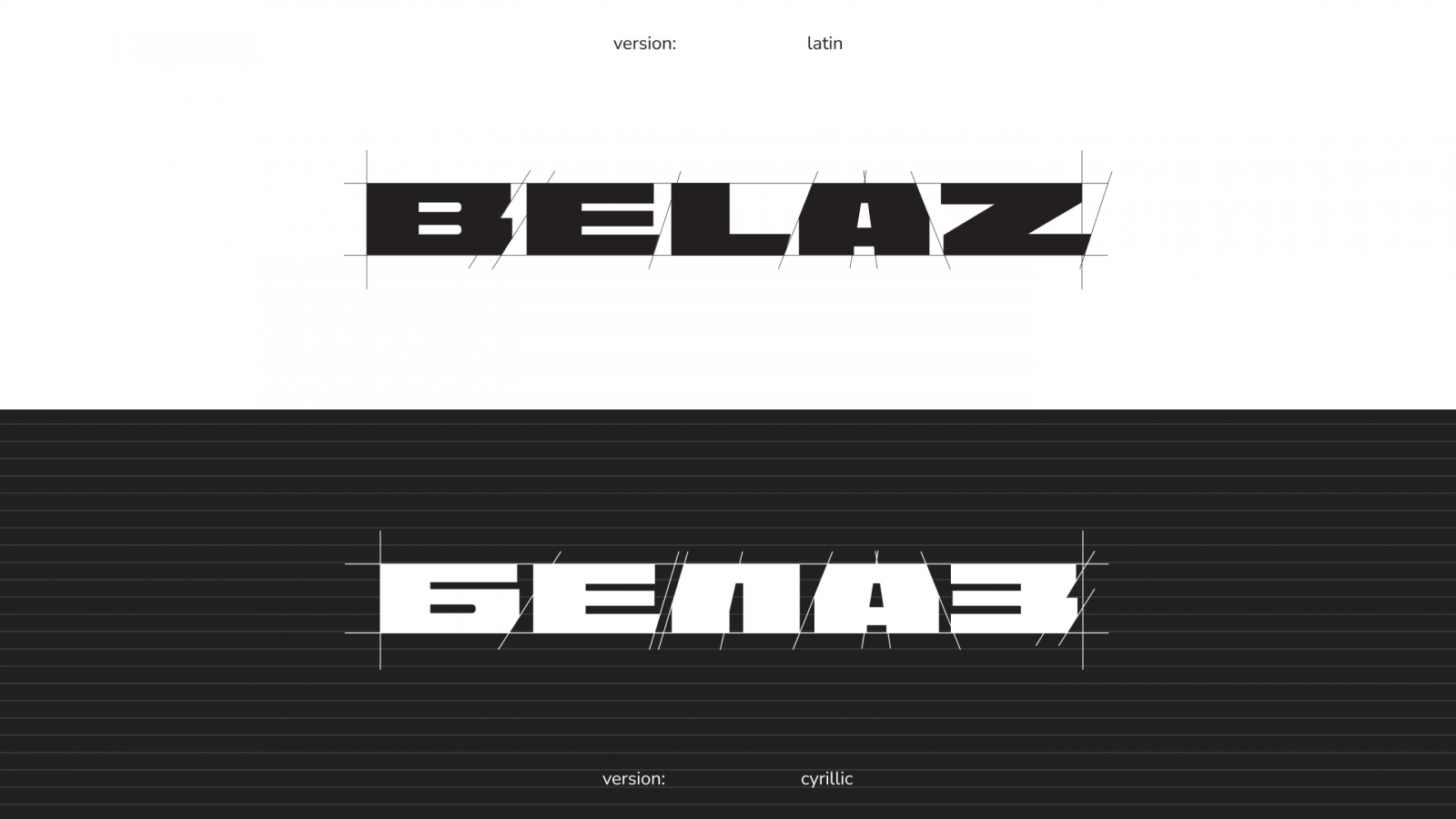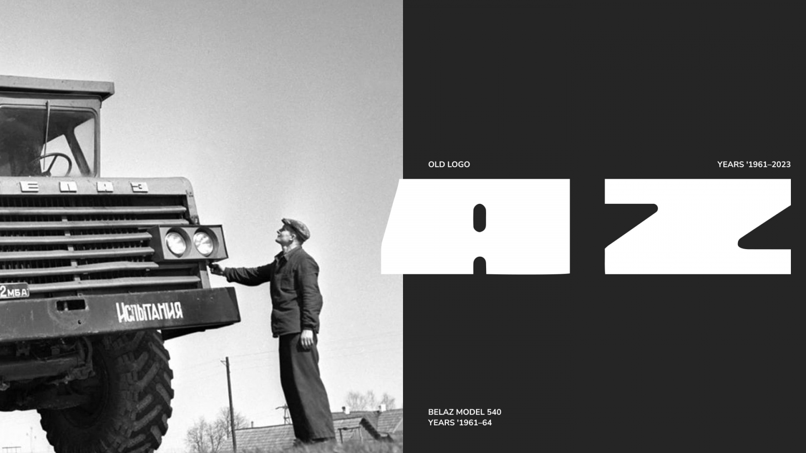 В процессе работы над редизайном было выявлено легкоуловимое сходство в чертах логотипа и форме деталей самосвала, характерной для автомобилестроения времен создания бренда. Обилие закругленных углов и плотность форм — характеристики, свойственные как архитектуре конструкции самосвала 60-х годов, так и устаревшему логотипу BELAZ. Потому новый логотип стал отражением визуальных изменений, которым подверглась карьерная техника бренда за более чем 70-летнюю историю.
