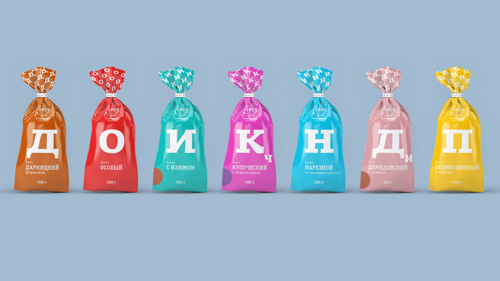 Новый стиль завода затронул не только айдентику самой компании, но и оформление всей её продуктовой линейки. Теперь продукция торговой марки «Стандарт» будет ярко выделяться на полках магазинов — каждый вид хлеба получил собственное цветовое решение, а выделение первой буквы его названия стало уникальным отличительным признаком продукции бренда.