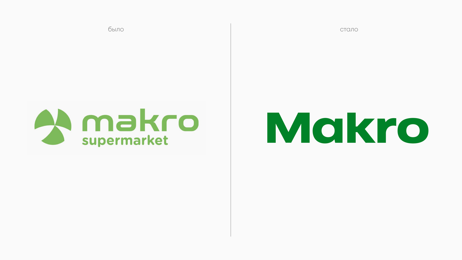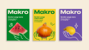 Крупный и уверенный шрифтовой логотип MAKRO хорошо заметен с улицы. Рукотворный иллюстративный стиль добавляет айдентике дружелюбности и «оживляет» бренд.