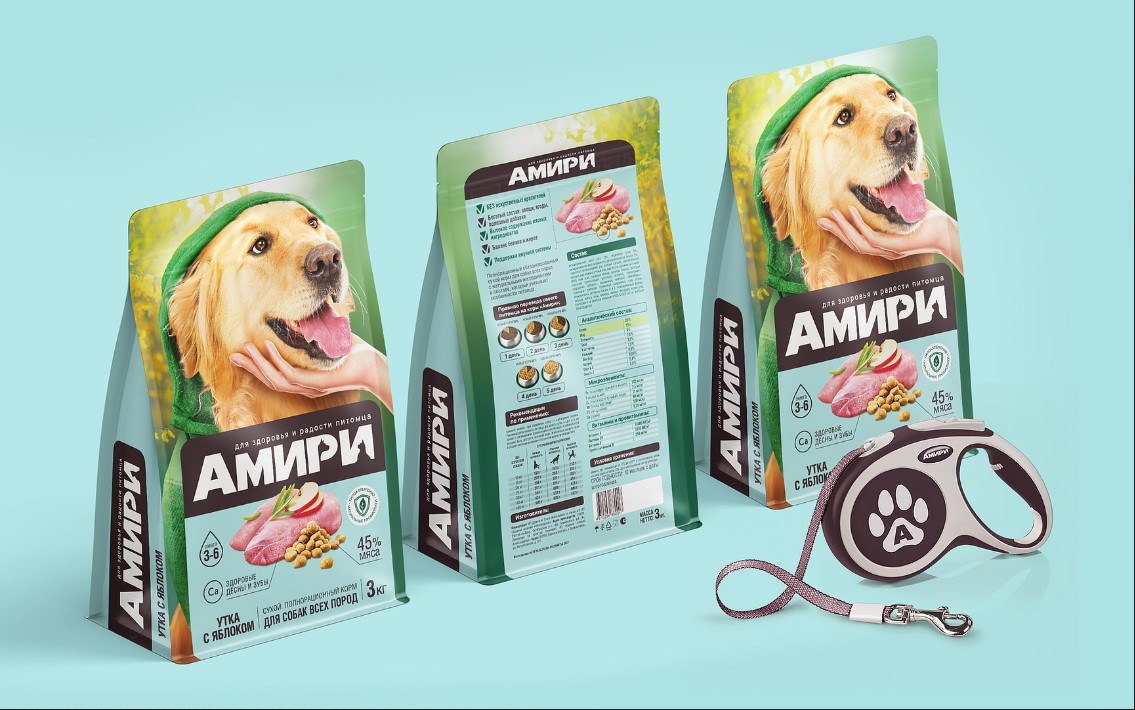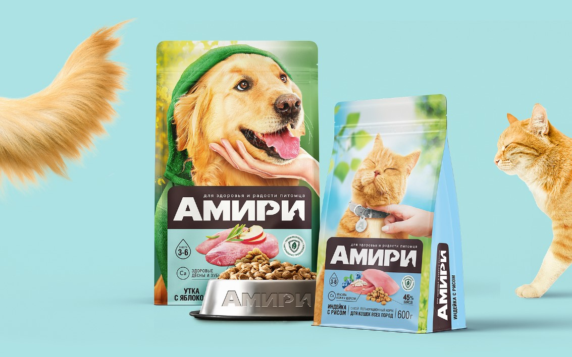 «Амири» — это бренд с натуральным гипоаллергенным составом, но помимо преимуществ продукта было важно передать трепетное отношение к нашим маленьким друзьям. Для того, чтобы транслировать эти ценности, команда Getbrand воспользовалась классным приемом — присутствием хозяина на упаковке, но не в доминирующей позиции, а в качестве заботливого партнера о своем питомце. Чуткое внимание человека к собаке подчеркнуто надетым забавным худи, которое не даст замерзнуть на прогулке, а к кошке — красивым ошейником с инициалом бренда. Характерные позы домашних животных на упаковке кормов говорят о полном доверии и любви к своему хозяину. Сами изображения четвероногих друзей вызывают лишь положительные эмоции своими добродушными мордочками. Такой детальный подход к каждому элементу визуальной коммуникации рассказывает целую историю, часть которой обязательно хочется стать.