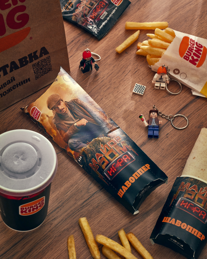 Новую промо-кампанию, посвящённую новому фильму «Майор Гром: Игра», запустил «Бургер Кинг». В рамках проекта представили новое блюдо — «Шавоппер». Оно представляет собой шаверму, которую дополнили ингредиентами фирменного бургера сети «Воппер». Кроме того, коллаборация коснулась и ассортимента игрушек. Покупатели могут приобрести брелоки с изображением главных героев франшизы. Подробнее на Sostav.