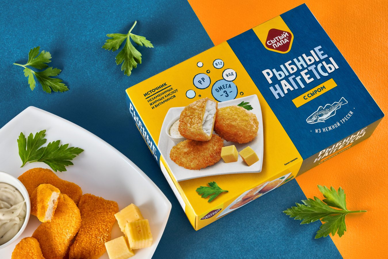 Редизайн рыбных наггетсов «Сытый папа» от DS1 Branding: польза и аппетитность в новой упаковке