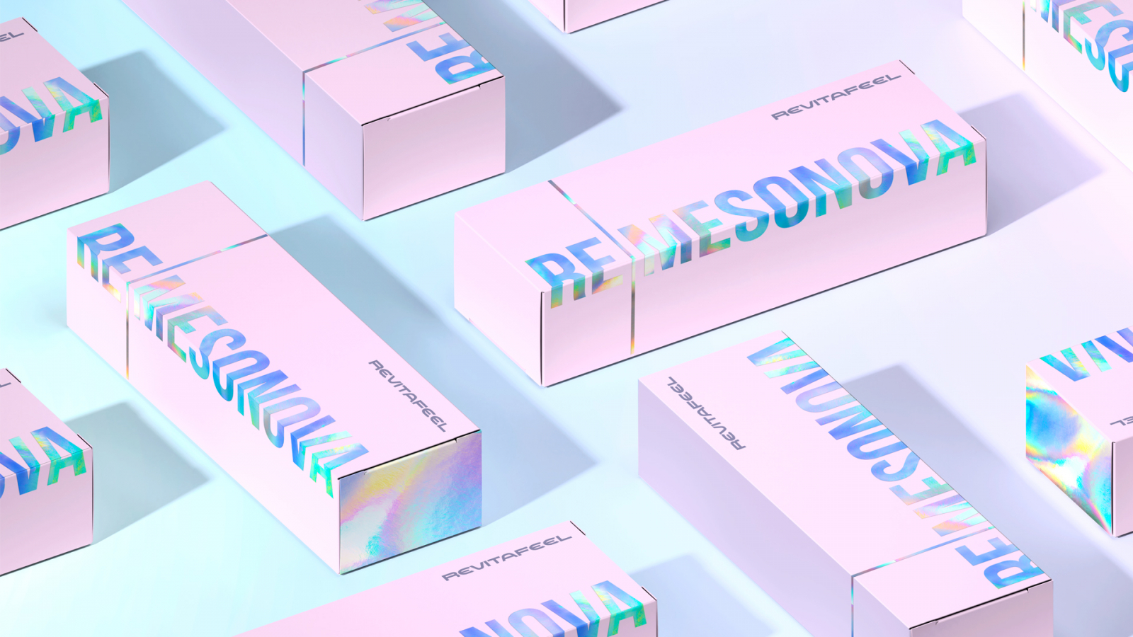 Одной из таких марок стала Remesonova, для которой в рамках редизайна команда разработала новый логотип и оформление упаковки. В новом решении облика марки подчеркнули её девиз — «Remesonova — икона роскоши кожи». На упаковке появилась крупное название продукта, выполненное при помощи тиснения серебристой голографической плёнкой. За счёт спокойного однотонного фона выгодно акцентируется внимание на названии препарата и конкретного SKU. Агентство использовало цветовую дифференциацию всей линейки, понимая, что в перспективе могут появиться новые виды и направления этого развивающегося бренда.