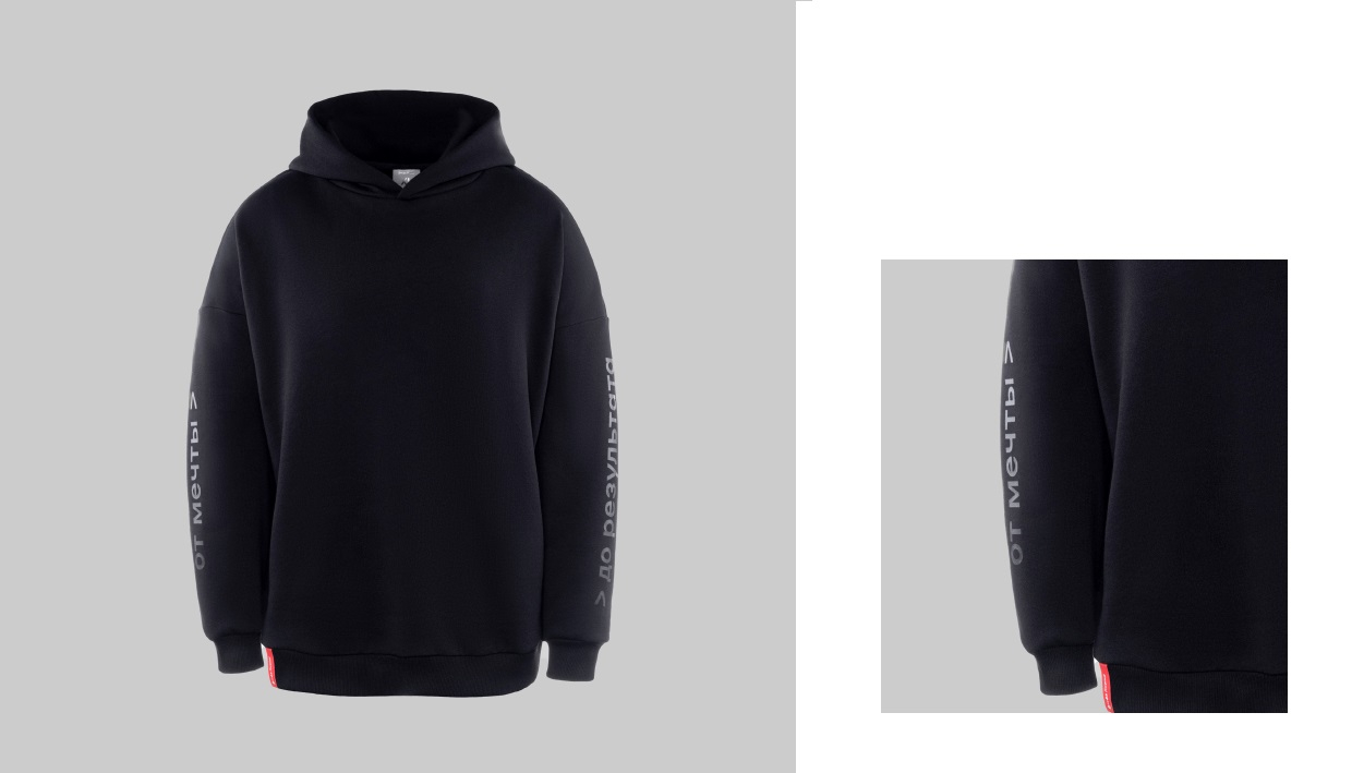 В рамках проекта продумали вшивные флажки, шейные жаккардовые и бумажные навесные бирки, вшивные петли и пуговицы, а также упаковка и инструкции по уходу за одеждой.
