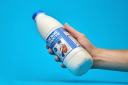В центре внимания теперь находится укрупненная логозона, уверенно презентующая название. Узнаваемый персонаж — дружелюбный молочник, разносящий людям свежий продукт в кувшине — стал частью стилизованной почтовой марки, что визуально облегчило композицию. Это помогло усилить отстройку внутри линейки за счет введения фона классических для категории цветов.