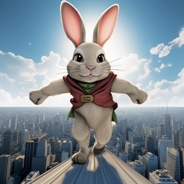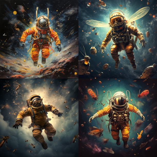 Здесь по запросу "flying bunny in a spacesuit" получился скорее персонаж из комикса “Человек-муравей и Оса”: