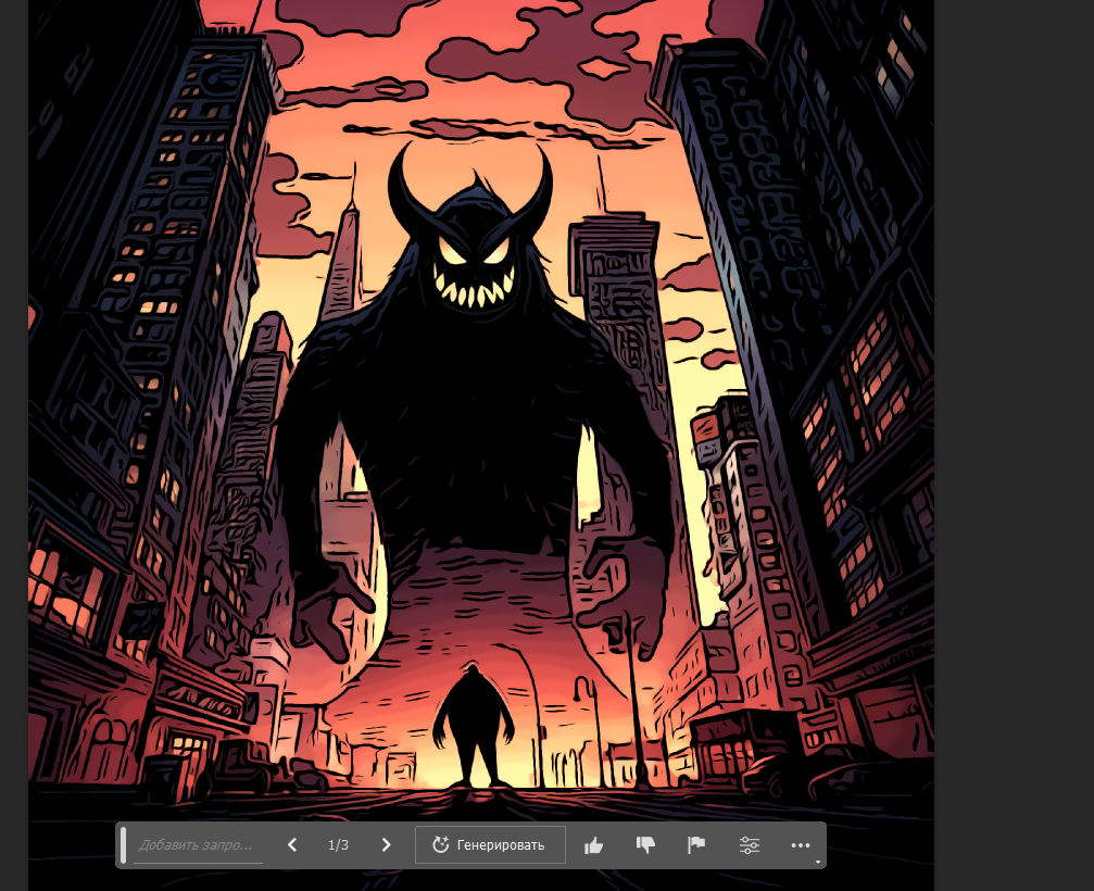 Иногда при работе с нейросетями возникают недопонимания, поэтому дизайнерам приходится дорабатывать изображение в фотошопе. Например, несмотря на то, что в запросах много раз указывалось «a comic book strip» или «comic book style», на выходе мы получали картинку в стиле Disney. Чтобы сохранить идею, обратились к Photoshop, который сумел изобразить супергероя в нужной стилистике.