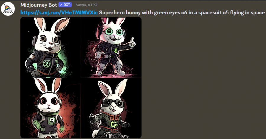 Самой распространенной болью в Midjourney является прорисовка частей тела у персонажей: поплывшие глаза, руки без пальцев, тройное ушко у зайчика. Было потрачено много времени для получения адекватного результата.