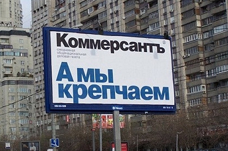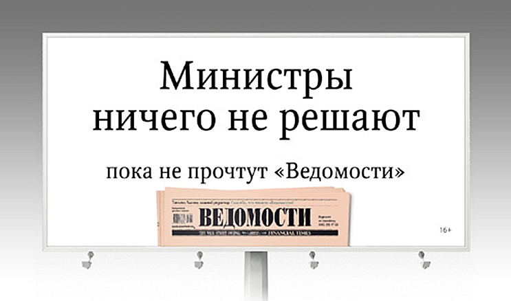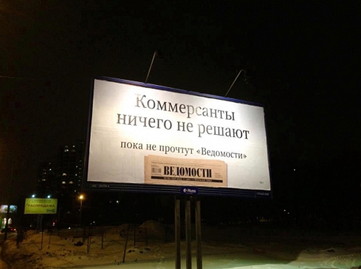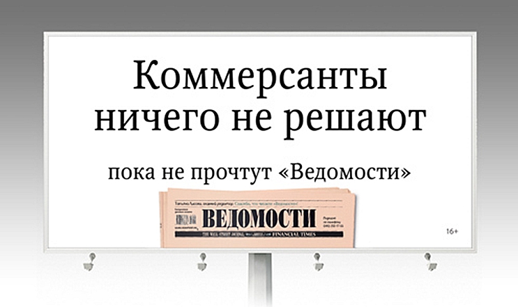 Вдвойне ироничной получилась рекламная кампания деловой газеты «Ведомости». В январе 2013 года столицу наводнили билборды с провокационной фразой: «Коммерсанты ничего не решают, пока не прочтут «Ведомости». Также встречались щиты с другими «наименованиями»: олигархи, министры. Над идеей проекта работало агентство IQ Marketing.
