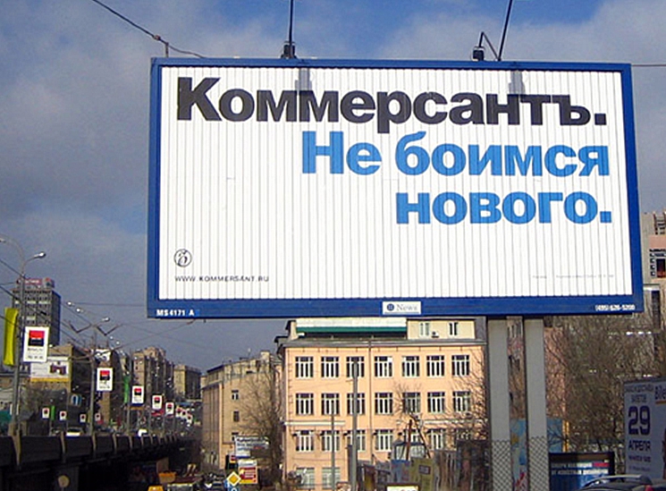 Буквально за два года до этого резонансными кампаниями в наружной рекламе мог похвастаться ИД «Коммсерсантъ». Он продвигал свои издания в манере, напоминающей лаконичные заголовки «Коммерсантъ» с двойным дном. Креатив разрабатывали сотрудники издательского дома.