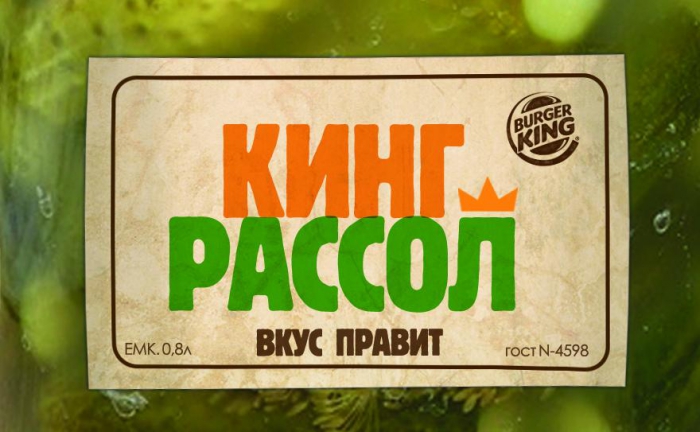 Сеть «Бургер Кинг Россия» сообщила, что только на один день 1 января в меню доставки на дом включит рассол. Он будет продаваться по цене 10 рублей за литровую порцию.