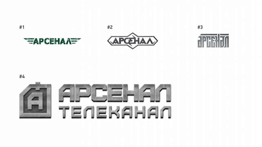 В процессе разработки логотип телеканала «Арсенал» претерпевал значительные концептуальные изменения.