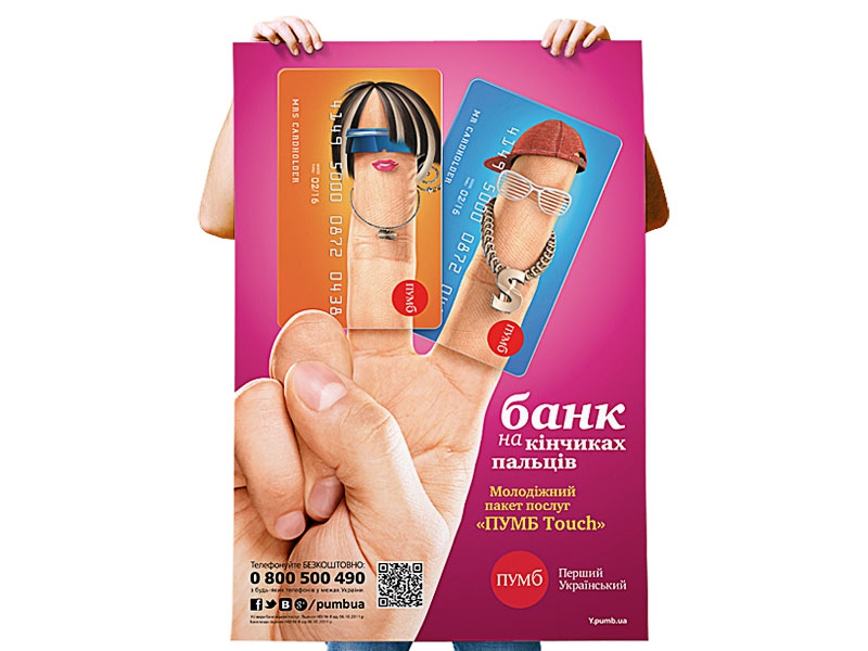 Агентство Tabasco представило рекламную кампанию, направленную на привлечение внимания молодежи к пакету услуг ПУМБ Touch Первого Украинского Международного Банка. Главными героями кампании стали очеловеченные пальцы.
