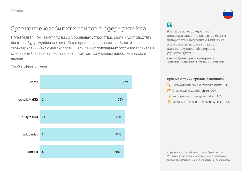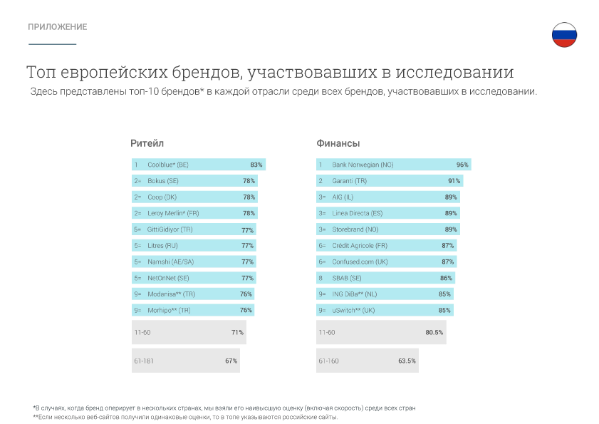 Google опубликовали исследование о лучших мобильный сайтах России в сфере финансов и ретейла. В ритейле безусловный лидер — Литрес, в финансах — Тинокофф.
