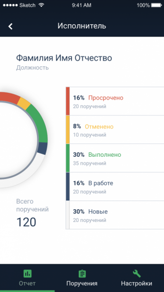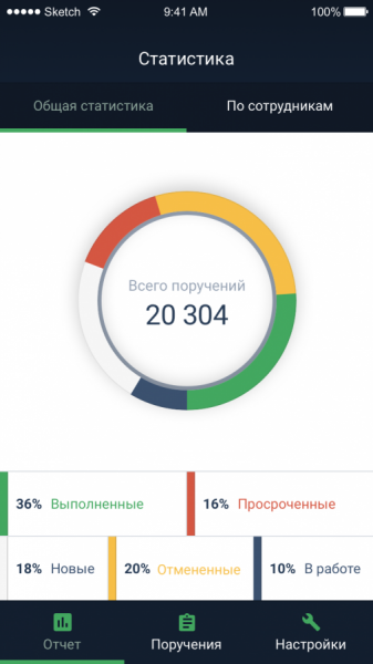 Каждая поставленная задача получает определенный статус, меняющийся в зависимости от степени завершенности. Вся статистическая информация по завершенным и незавершенным задачам, а также показатели эффективности работы постановщика и исполнителя задач фиксируется в системе и доступна для детального изучения в полном объеме администратором приложения.