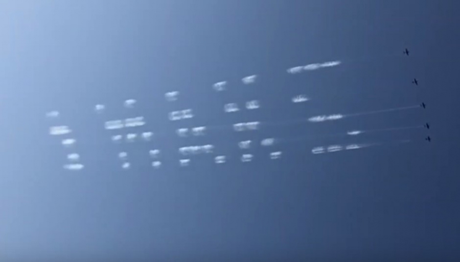 В четверг, 29 августа, российская пилотажная группа «Первый полет» впервые представила на авиасалоне технологию, которая превращает самолеты в летающий принтер, сообщает ТАСС.