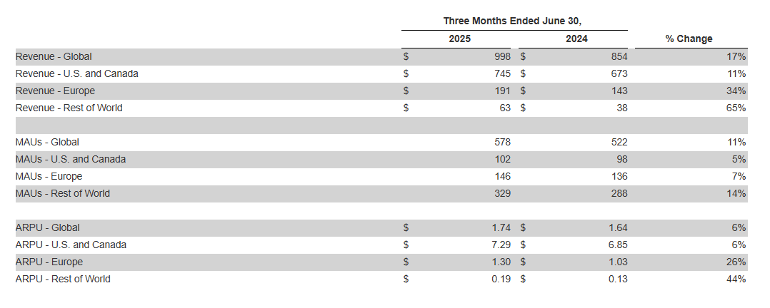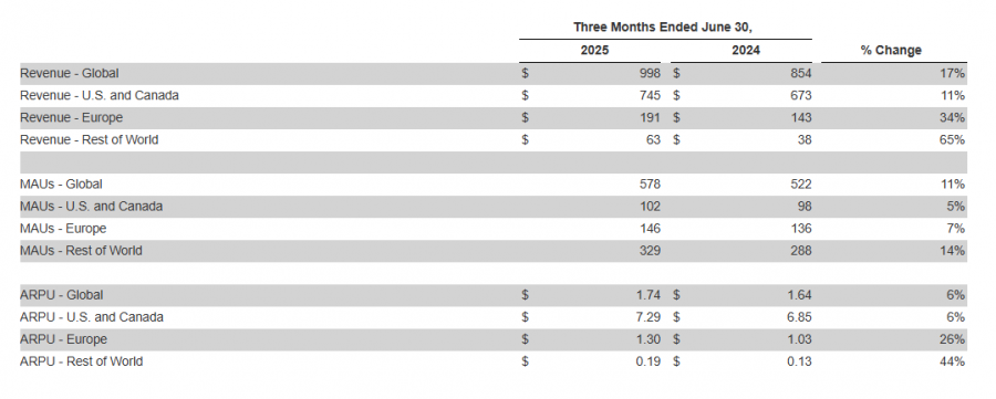 Американская Pinterest, владеющая одноименным интернет-сервисом визуальных закладок, опубликовала отчет о финансовых результатах за второй квартал 2025 года. Рост выручки составил 17%, до $998 млн. за квартал. Сумма превзошла как собственный прогноз компании, так и ожидания аналитиков, сообщает AdNews.