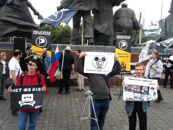 «Пиратская партия России» провела серию пикетов и митингов против закона о защите авторских прав в интернете. В Москве акция прошла на площади Краснопресненской заставы рядом с метро «Ул. 1905 года». Противники «копирастов» также собрались в Санкт-Петербурге, Казани, Томске и других городах.