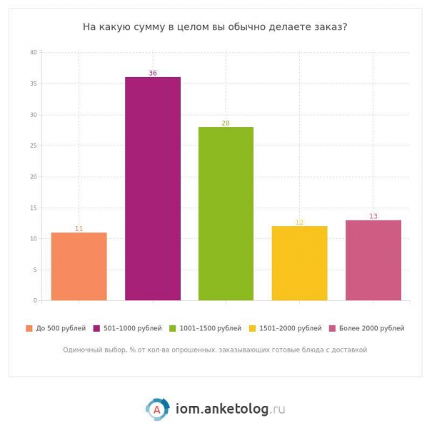 Средний чек за один заказ, по словам респондентов, составляет у них от 500 до 1000 рублей или больше. Причем оплачивать заказы большинство из них предпочитают наличными курьеру при получении. Банковской картой при оформлении заказа рассчитываются 58% опрошенных.