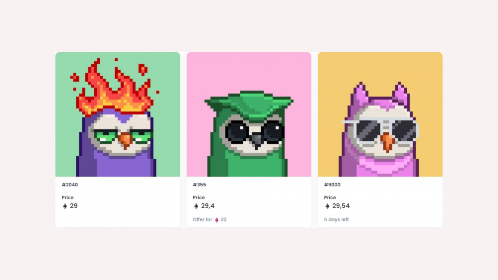 Несмотря на мрачные прогнозы, NFT-индустрия поставила новые ценовые рекорды. В апреле 2022 года недельный оборот продаж невзаимозаменяемых токенов достиг $1 млрд. Драйвером роста NFT-рынка весной выступила коллекция Moonbirds — «Лунные птицы», включающая 10 тыс. изображений пиксельных сов, рассказала продюсер проектов в Art&Tech, NFT и креативной экономике Ольга Дворецкая. Меньше чем за две недели она стала самой дорогой коллекцией месяца.