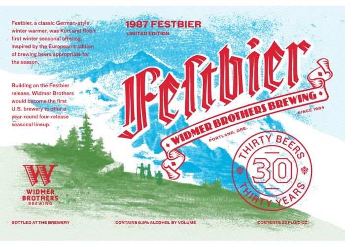 Пивовары из компании Widmer Brothers Brewing решили, что ничто не расскажет об истории пивзавода лучше, чем само пиво. Поэтому в честь своего тридцатого дня рождения они выпустили ограниченную партию лучших сортов пива. Над дизайном трудились тридцать креаторов, которые создали яркие и неповторимые этикетки, характеризующие сорт и вкус пива. На данный момент уже 13 сортов получили визуальное воплощение.